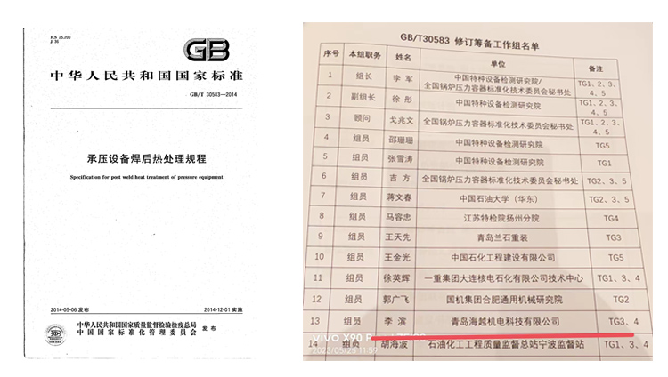 青島海越參與國家標準GB/T 30583《承壓設備焊后熱處理規程》修訂