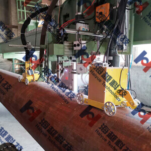 快速加熱感應器采用非接觸式加熱方式,可實現工件邊旋轉邊加熱。配置紅外測溫儀實時測量工件溫度。快速加熱感應器可以在工件3點-6點或6點-9點位置加熱。加熱后焊接,邊加熱邊焊接。 也可以用于縱縫自動焊。