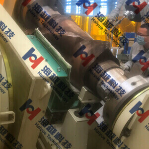 用于客戶現場的軸類表面堆焊保溫。軸表面進行加熱保溫,焊接部位的溫度在250℃左右。筒體材質:ZG300-600。采用圓弧感應器從軸底部進行加熱維溫。